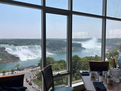 他社のツアーには付いていない、ナイアガラの滝を見下ろす高層ホテルの展望レストランでのランチが含まれています。